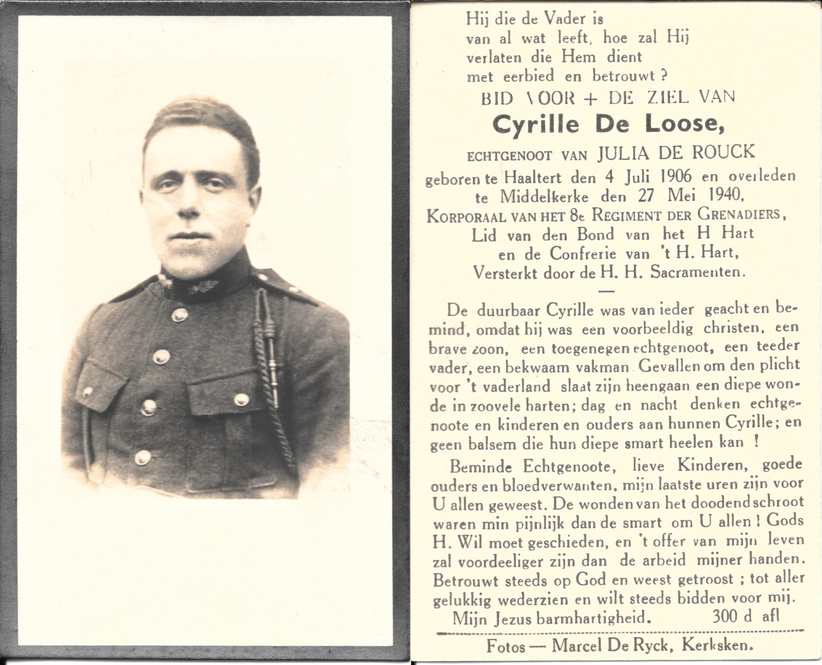 | De Loose Camiel | Haaltert | 04/07/1906 | Middelkerke | 27/05/1940 |