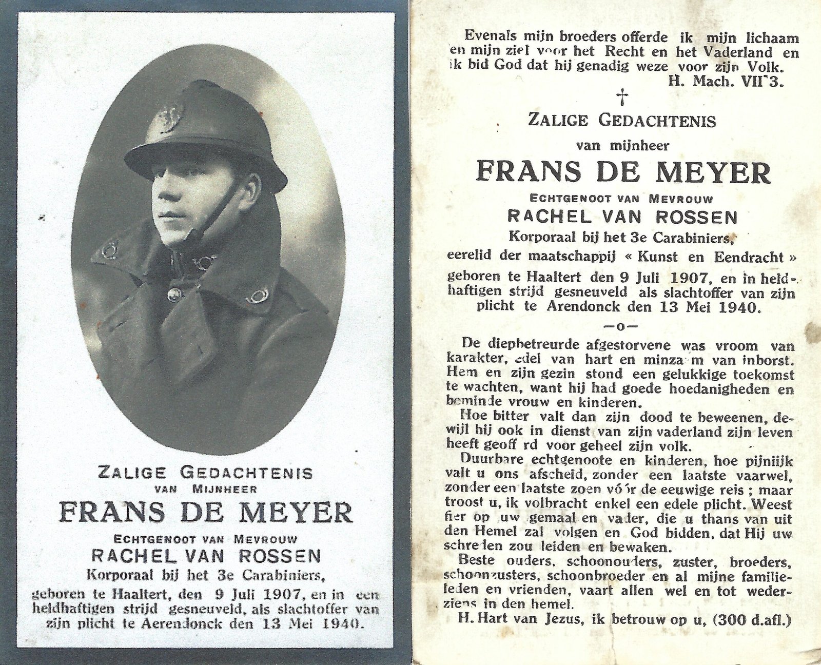 | De Meyer Frans | Haaltert | 09/07/1907 | Arendonk | 13/07/1940 |
