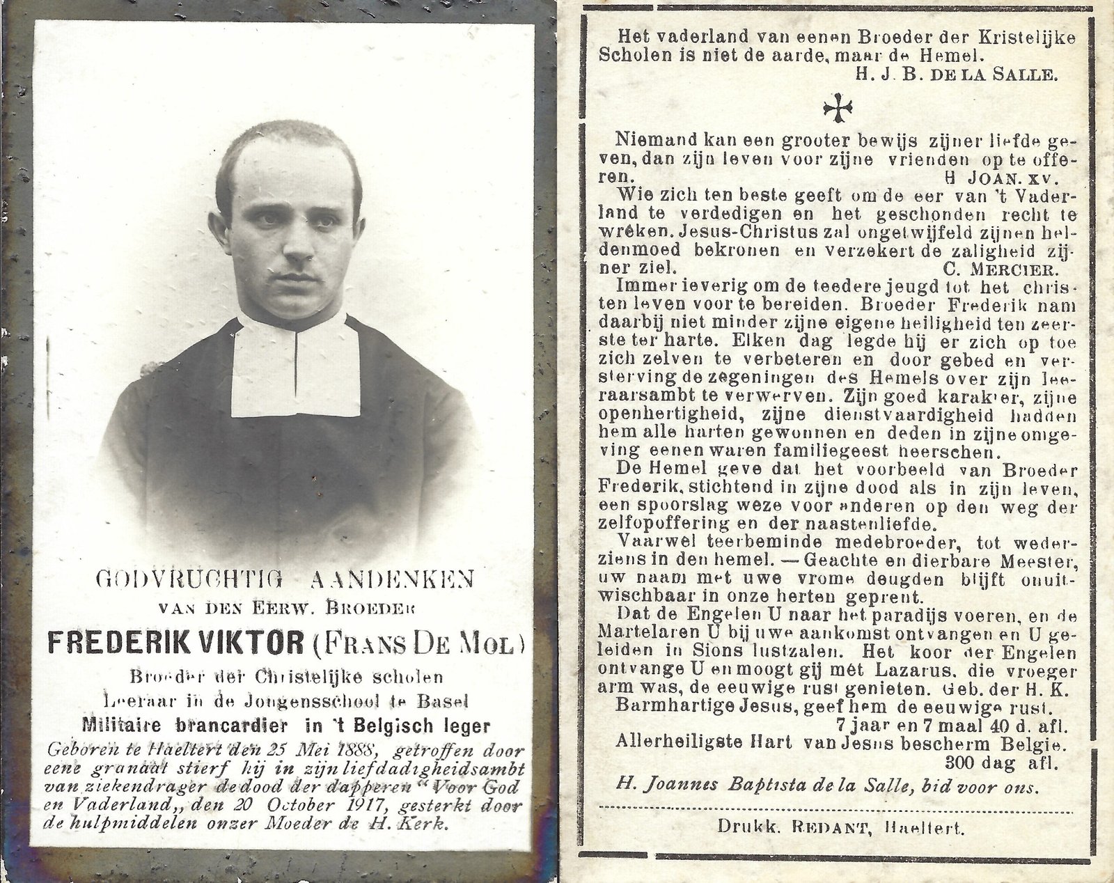 | De Mol Frans (Broeder Victor) | Haaltert | 25/05/1888 | Hoogstade | 20/10/1917 |