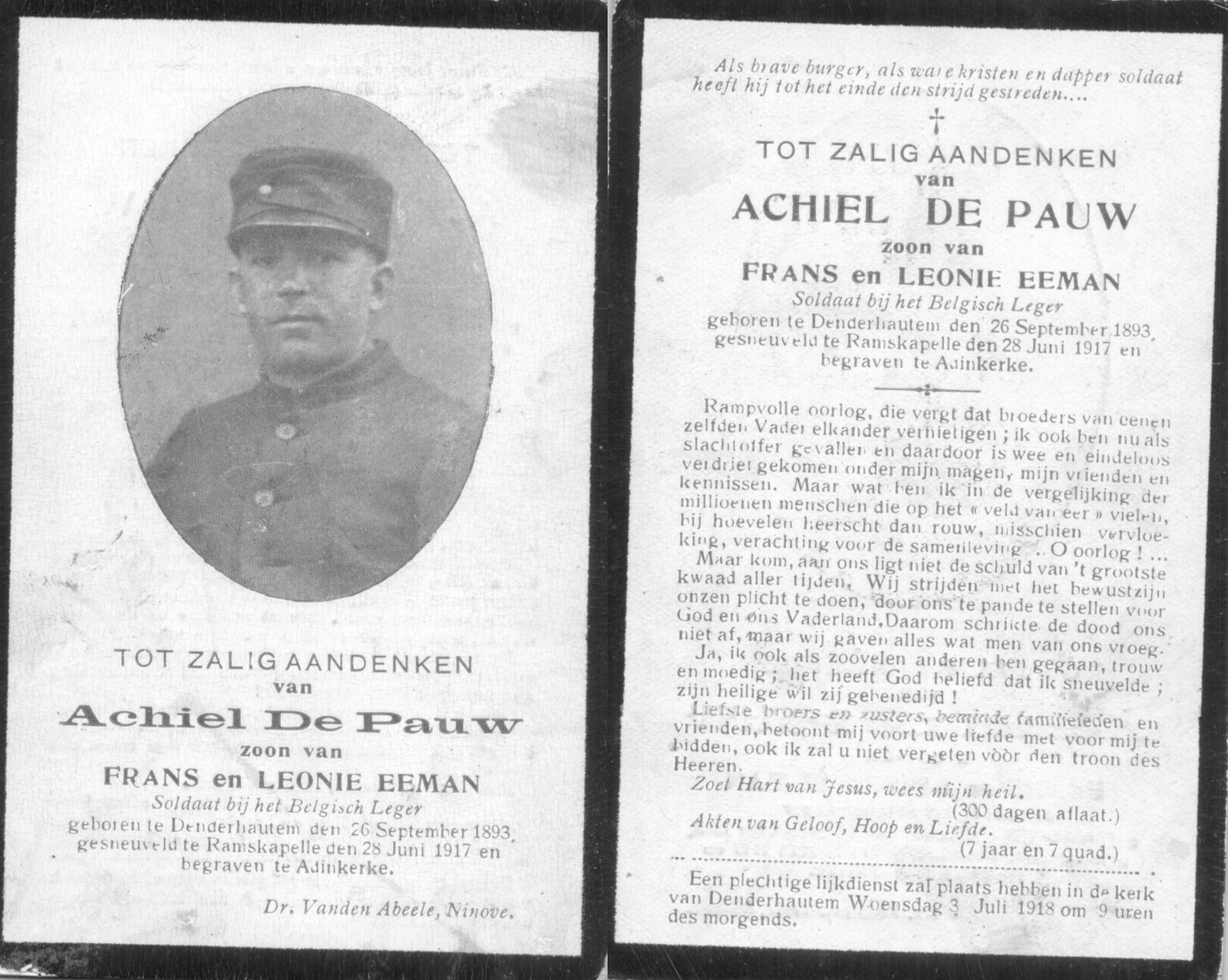 | De Pauw Achiel | Denderhoutem | 26/09/1893 | Ramskapelle | 28/06/1917 |