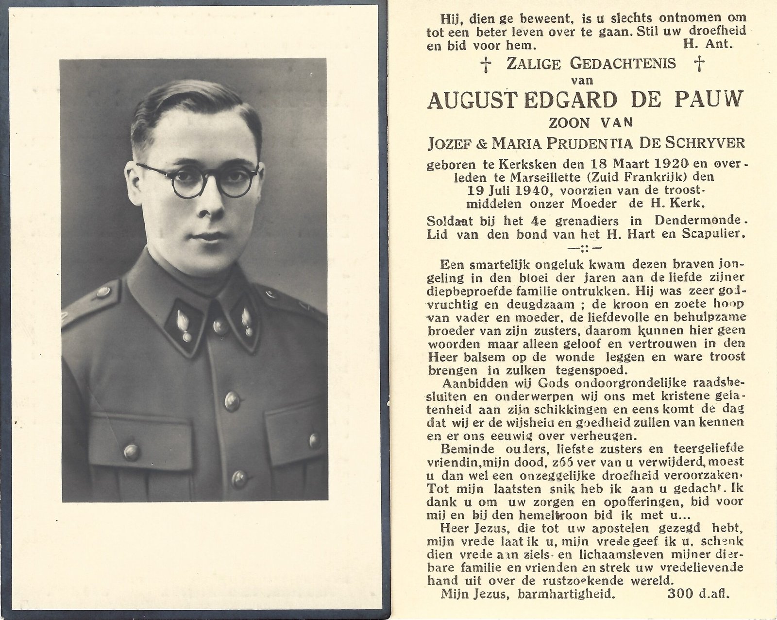 | De Pauw August | Kerksken | 18/03/1920 | Marseillette (Fr) | 19/07/1940 |