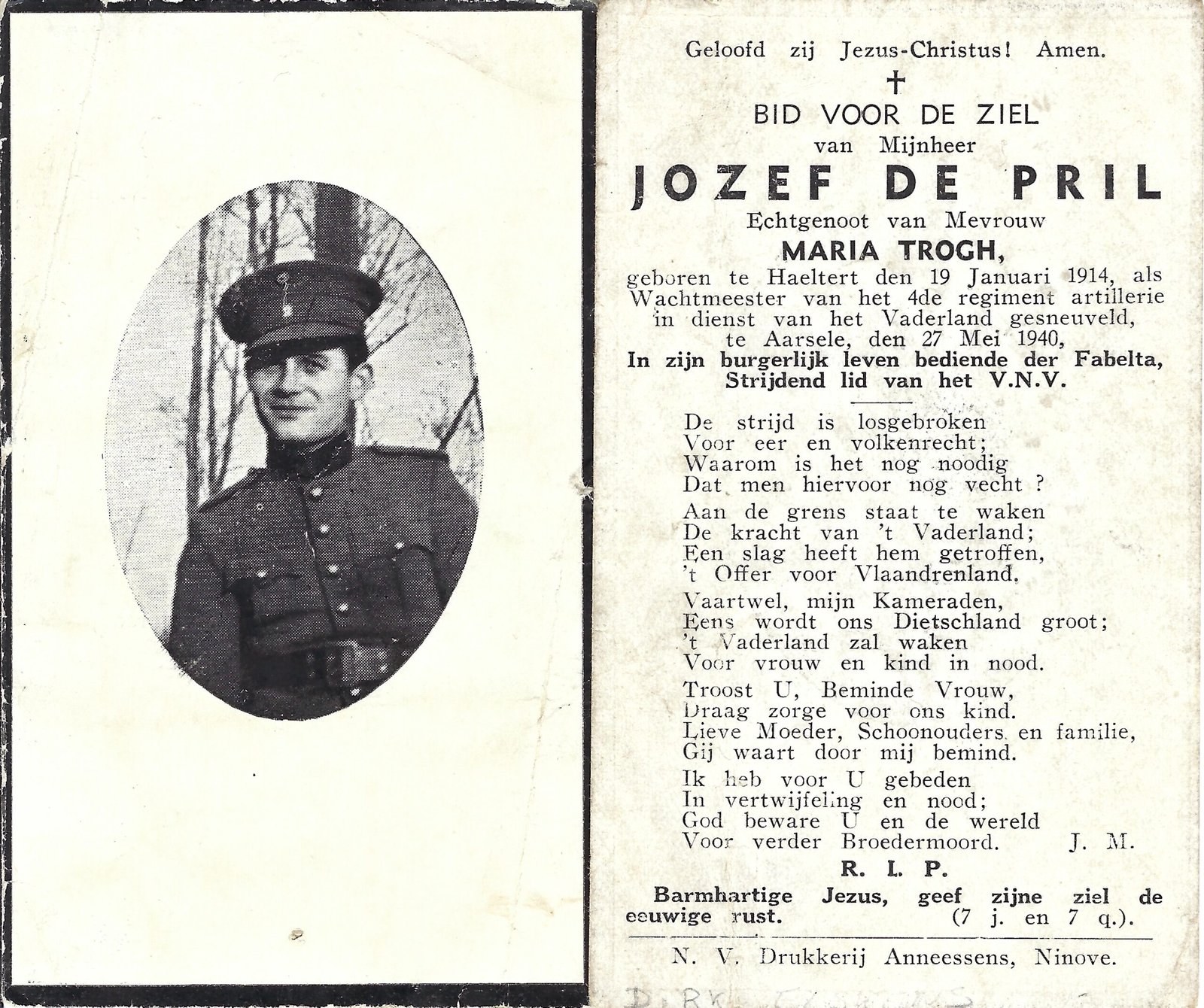 | De Pril Theodoor Jozef | Haaltert | 19/01/1914 | Aarsele | 27/05/1940 |