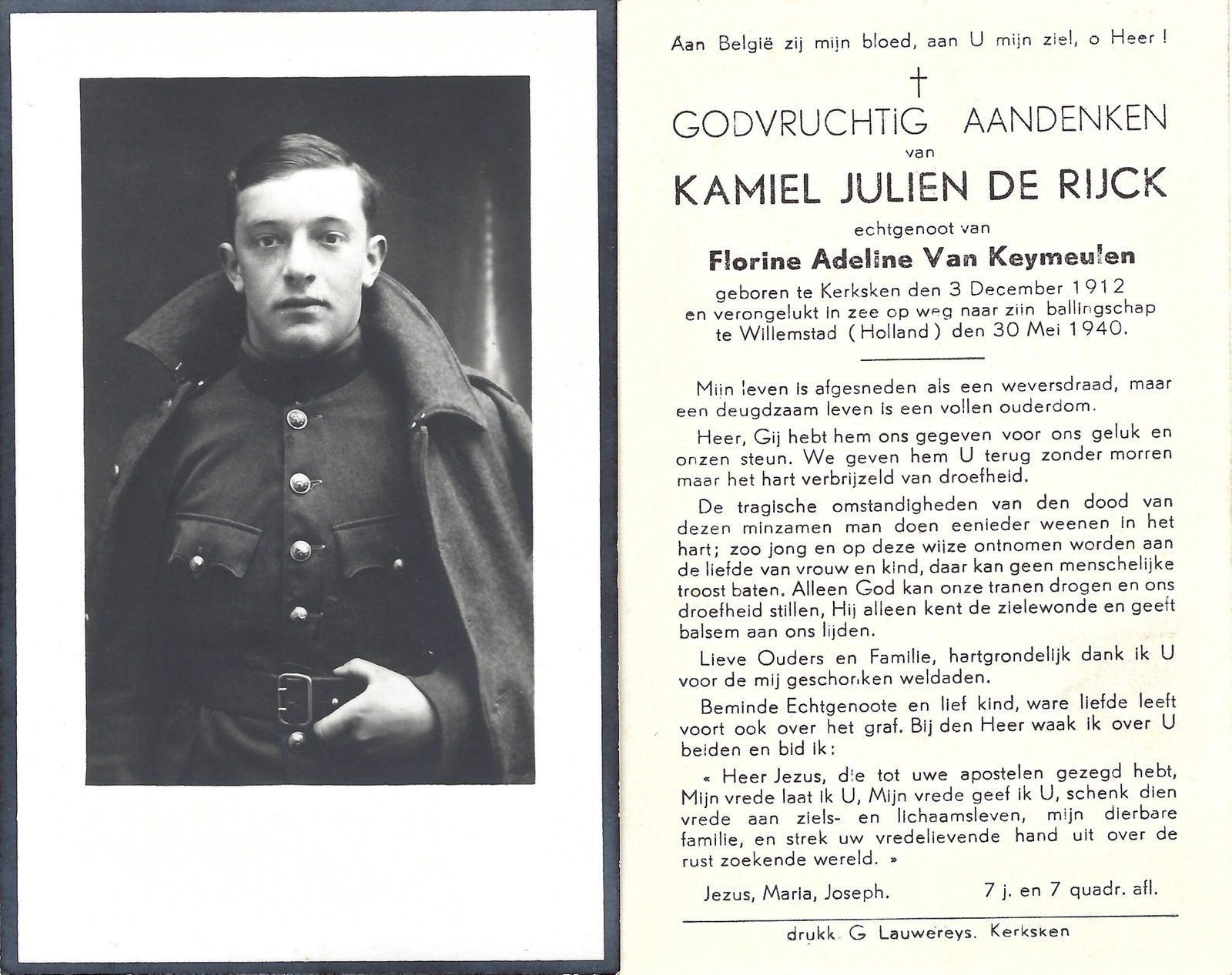 | De Rijck Kamiel | Kerksken | 03/12/1912 | Willemstad (Nl) | 30/05/1940 |