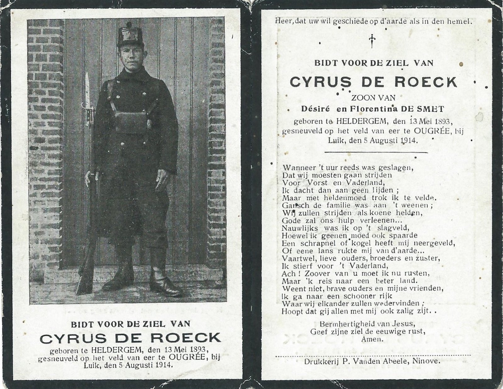 | De Rouck Cyrus | Heldergem | 13/05/1893 | Ougrée | 30/09/1918 |