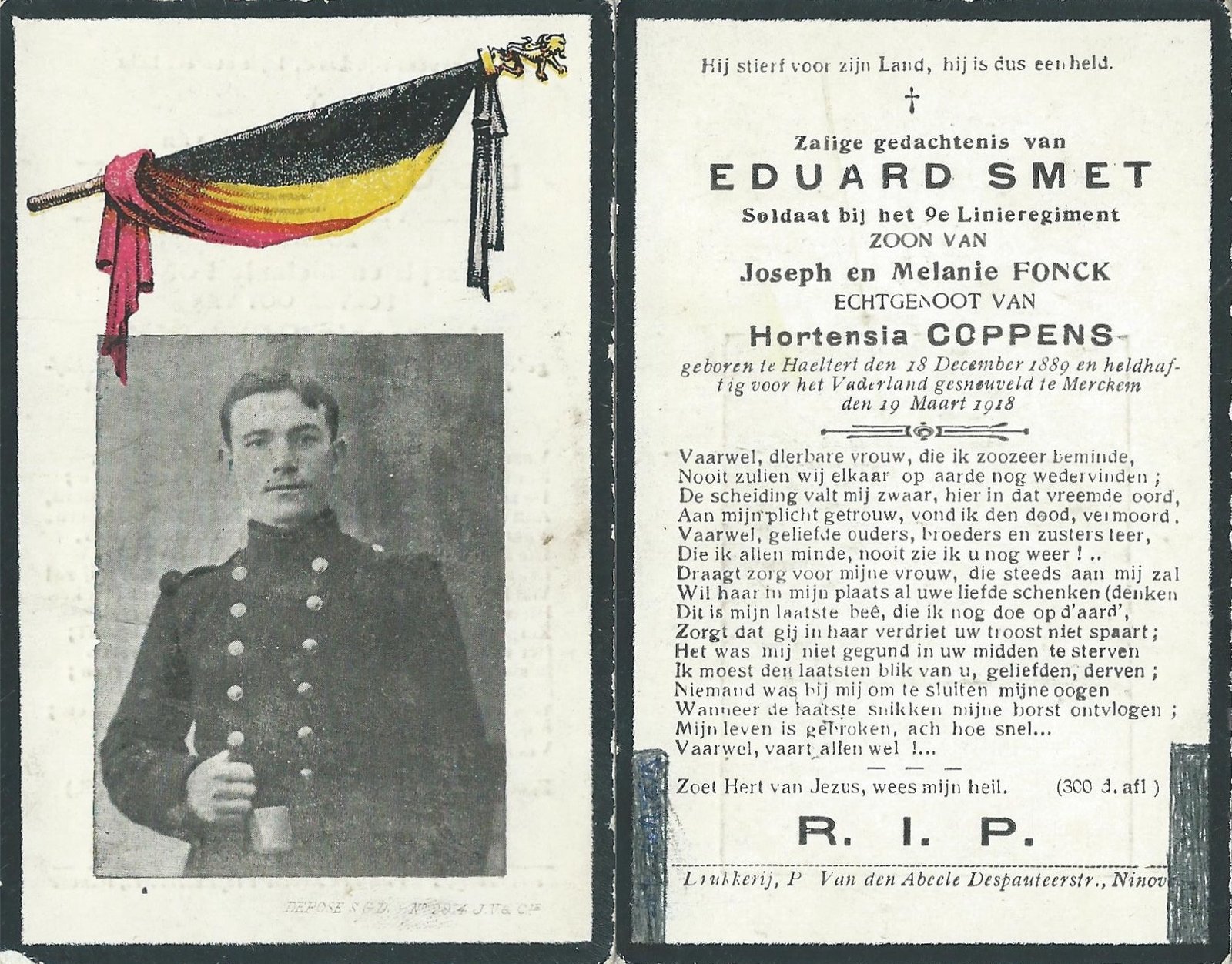 | De Smet Edouard | Haaltert | 18/12/1889 | Beveren aan de Ijzer | 19/03/1918 |