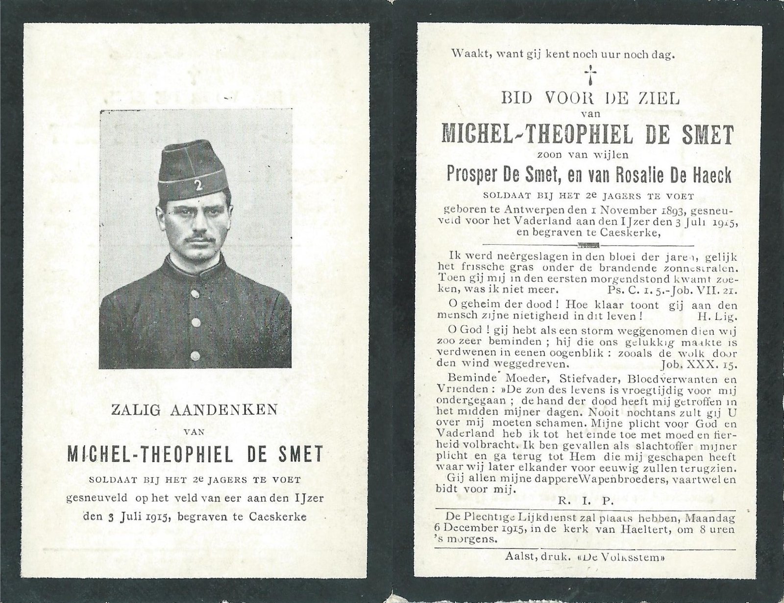 | De Smet Michel | Antwerpen | 01/11/1893 | Kaaskerke | 03/07/1918 |