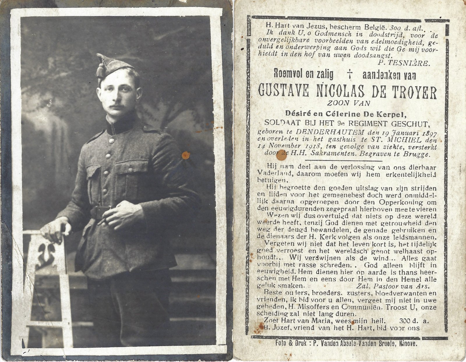 | De Troyer Nicolaus Gustaaf | Denderhoutem | 19/01/1897 | Sint-Michiels-Brugge | 14/11/1918 |