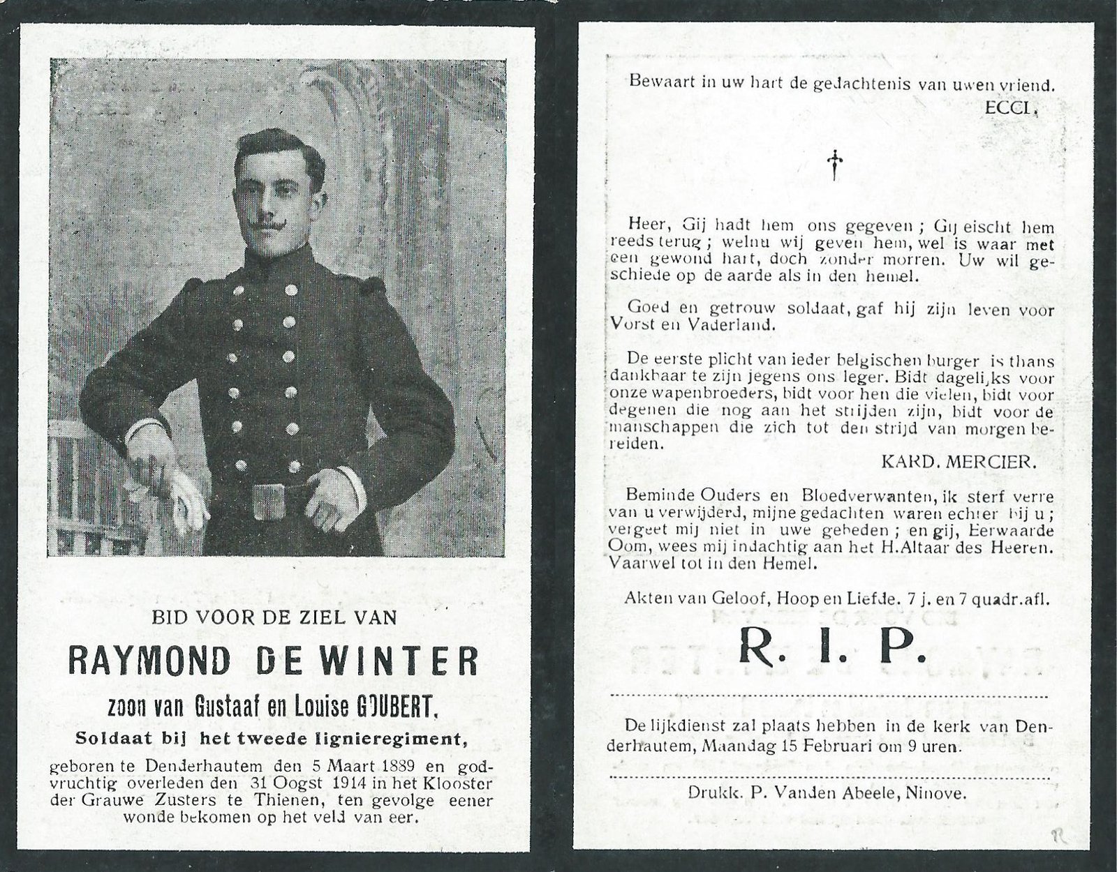 | De Winter Raymond | Denderhoutem | 05/03/1888 | Tienen | 31/08/1914 |