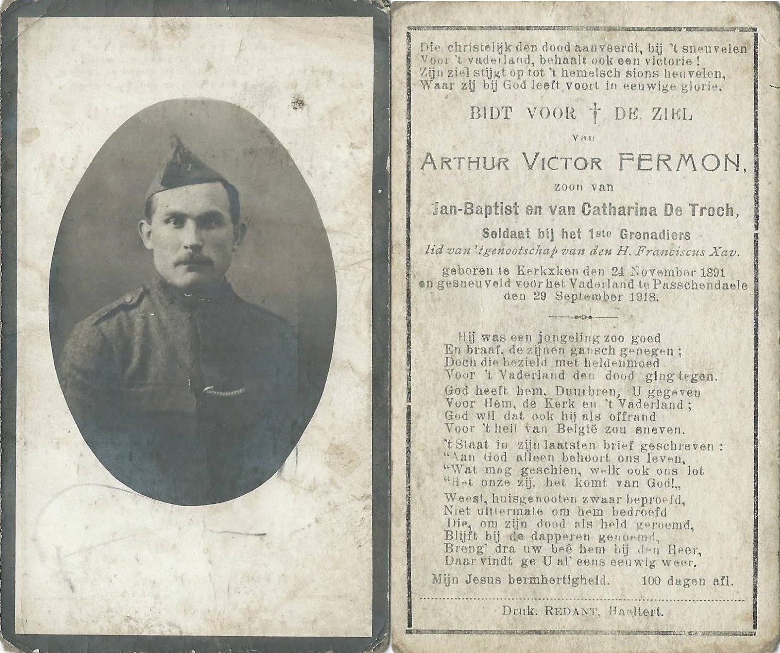 | Fermon Arthur | Kerksken | 24/11/1891 | Passendale | 29/09/1918 |