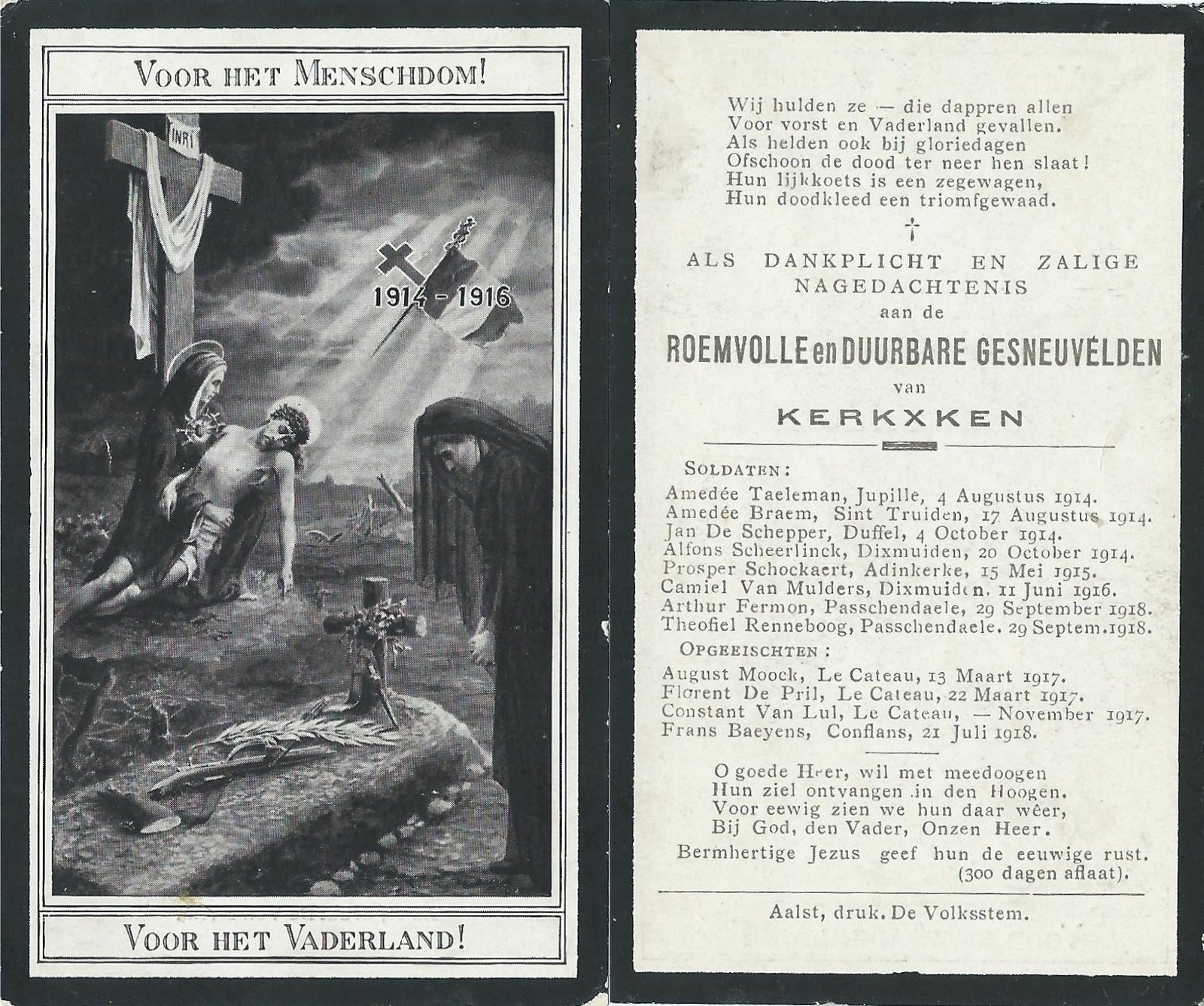 Gesneuvelden WO I Bidprentje Kerksken herdenking