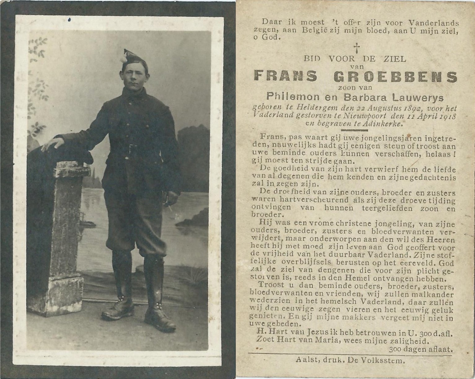 | Groebbens Frans | Heldergem | 22/08/1892 | Nieuwpoort | 11/04/1918 |