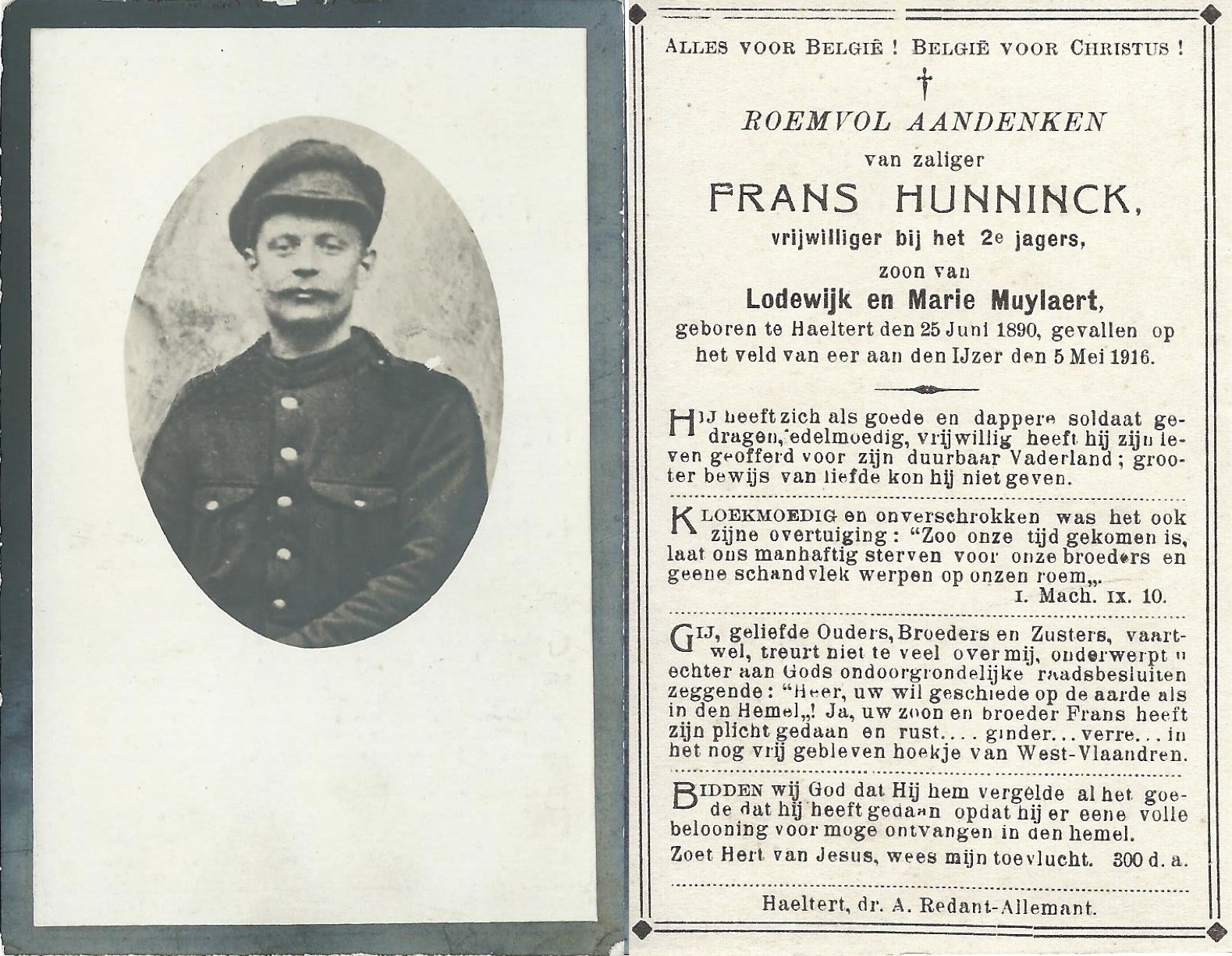 | Hunninck François | Haaltert | 25/06/1890 | Kaaskerke | 05/05/1916 |