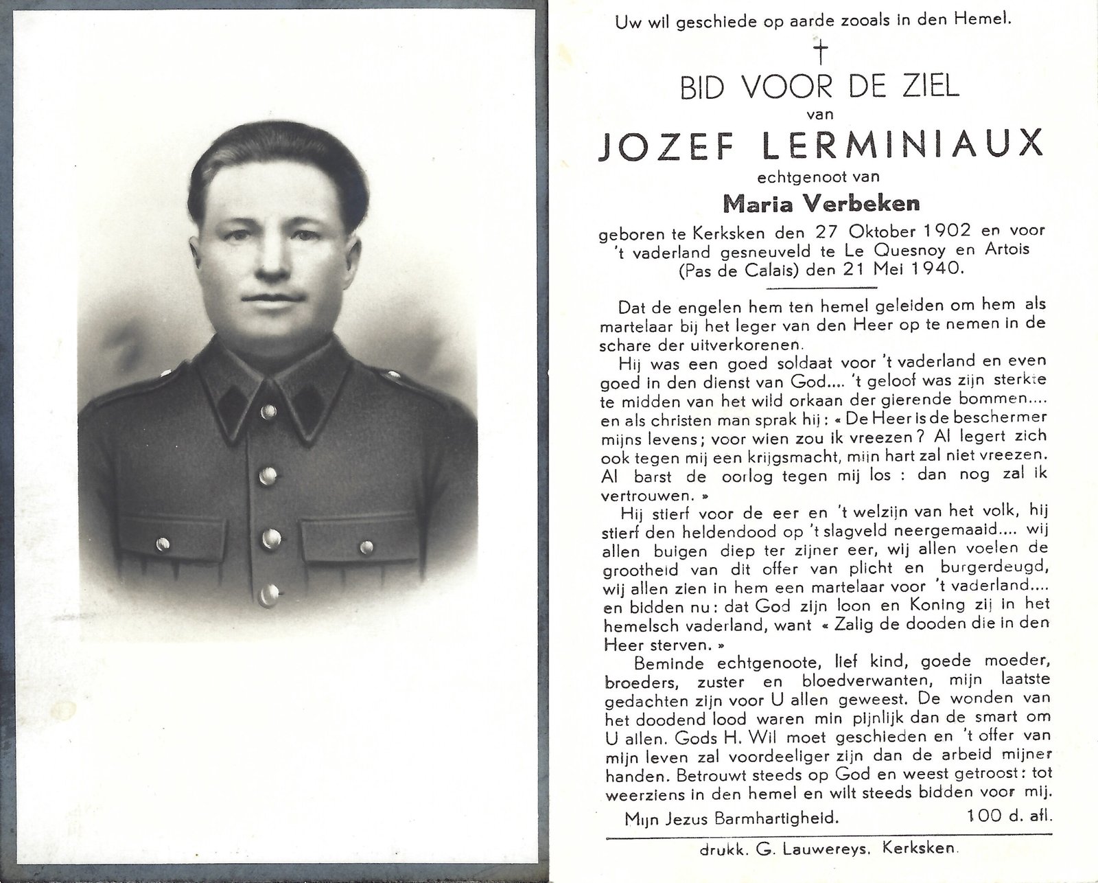 | Lerminiaux Jozef | Kerksken | 27/10/1902 | Le Quesnoy en Artois (Fr) | 21/05/1940 |