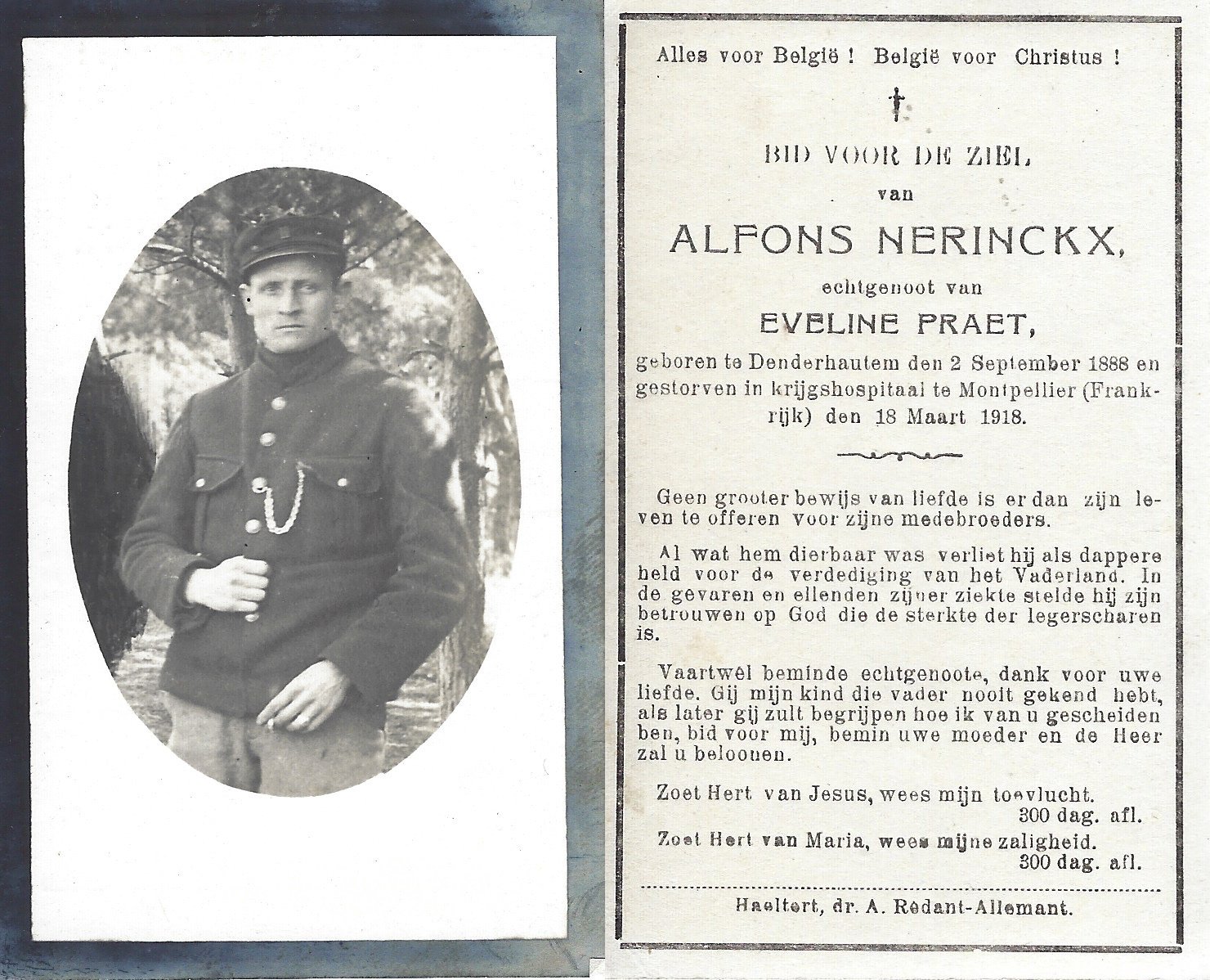 | Nerinckx Alfons | Denderhoutem | 02/09/1888 | Montpellier (Fr) | 18/03/1918 |