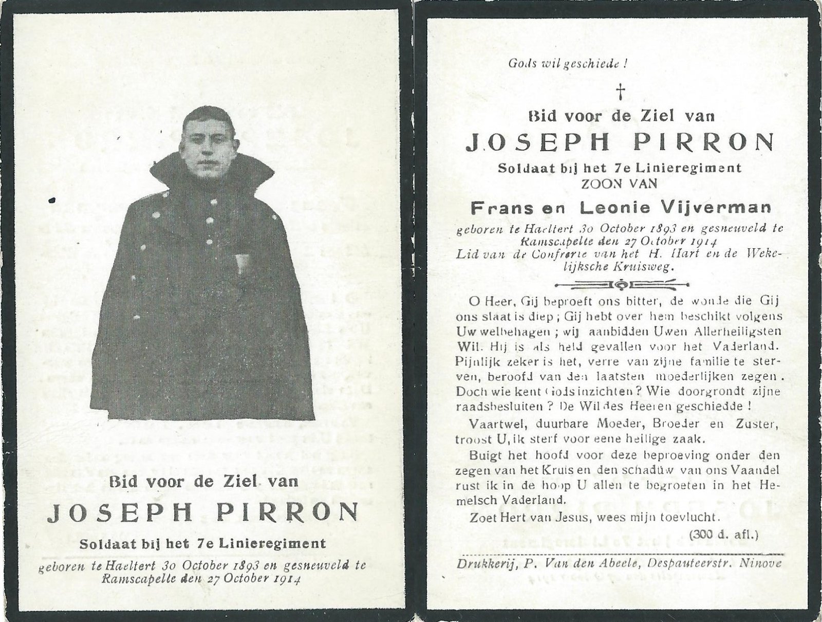 | Piron Joseph | Haaltert | 30/10/1893 | Ramskapelle | 27/10/1914 |