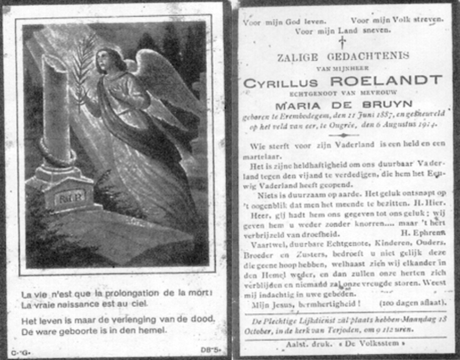 | Roelandt Cyriel | Erembodegem | 11/06/1887 | Ougrée | 06/08/1914 |