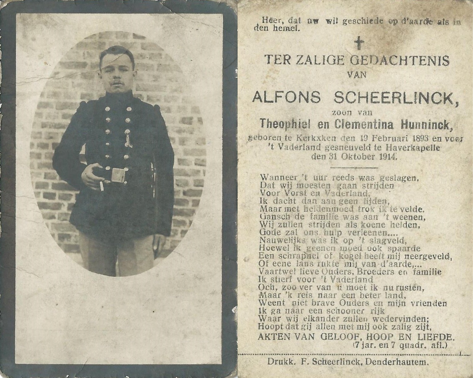 | Scheerlinck Alfons | Kerksken | 19/02/1893 | Haverkapelle | 31/10/1914 |