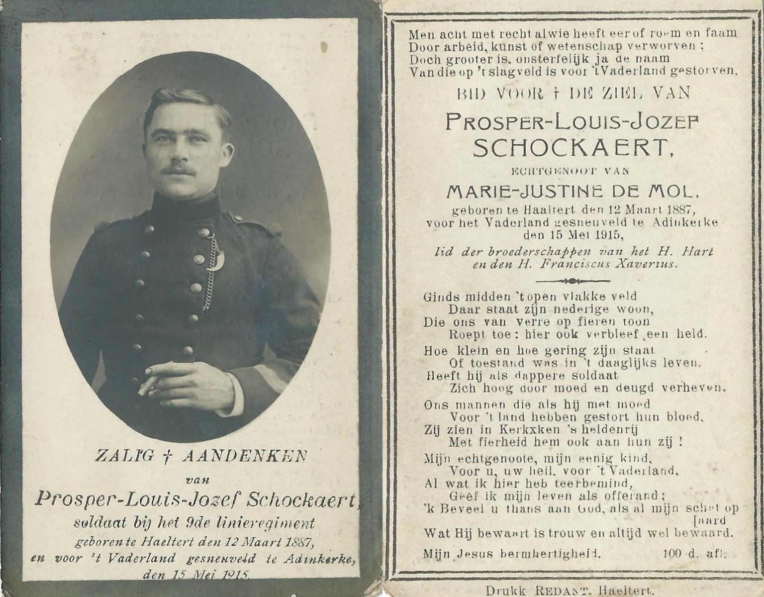 | Schockaert Prosper | Haaltert | 12/03/1887 | Adinkerke | 15/05/1915 |