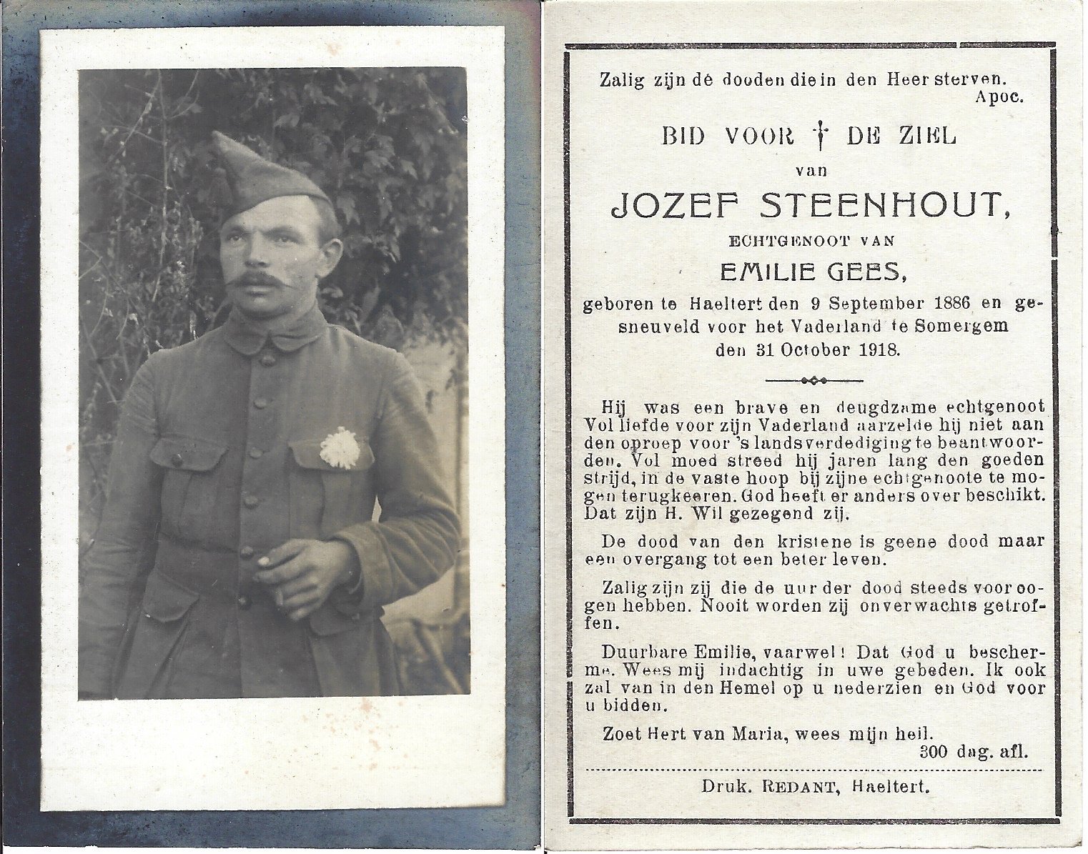 | Steenhout Jozef | Haaltert | 09/09/1886 | Zomergem | 31/10/1918 |