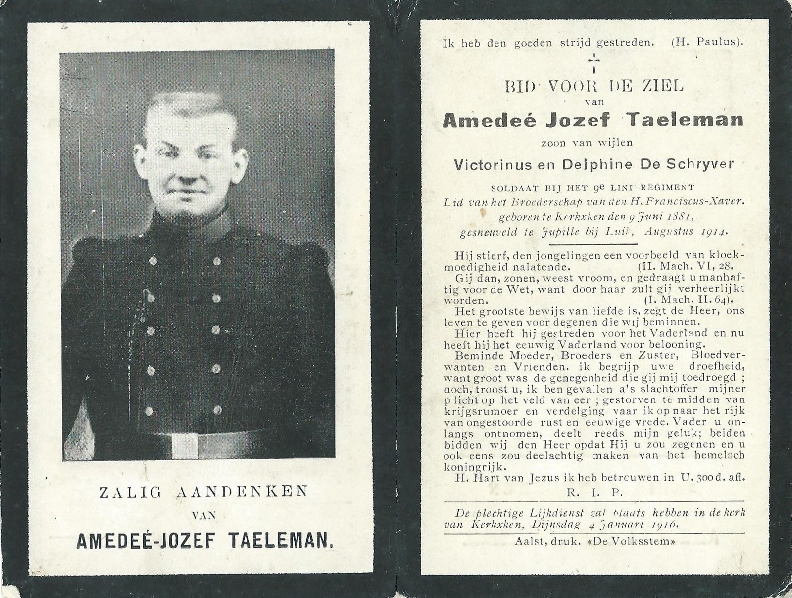 | Taeleman Amedée | Kerksken | 09/06/1881 | Jupille | 04/08/1914 |