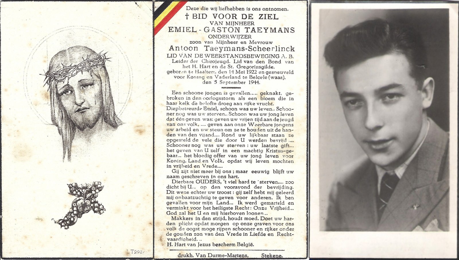 | Taeymans Emiel | Haaltert | 14/05/1922 | Belsele | 05/09/1944 |