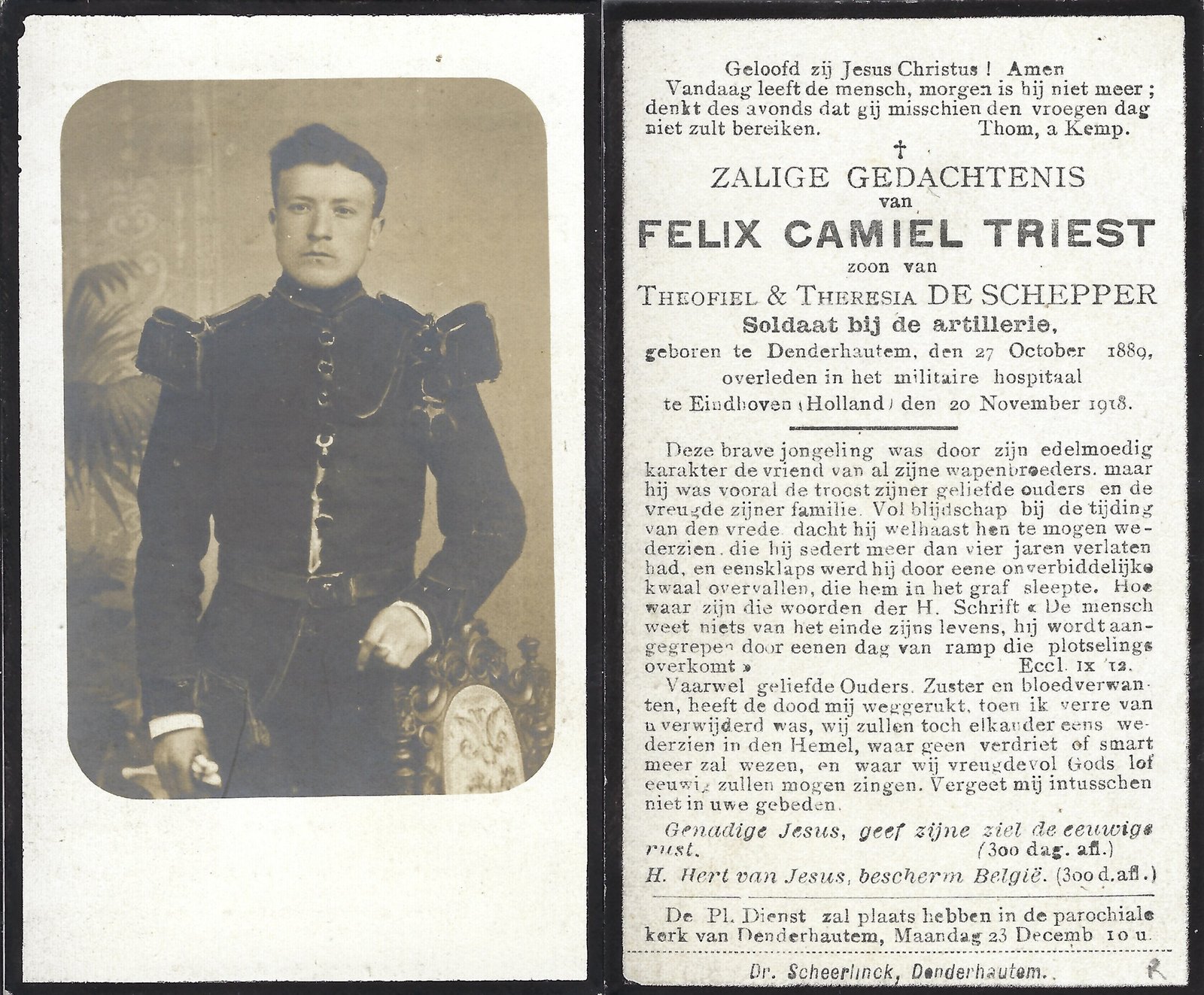 | Triest Felix | Denderhoutem | 27/10/1889 | Eindhoven (Nl) | 20/11/1918 |