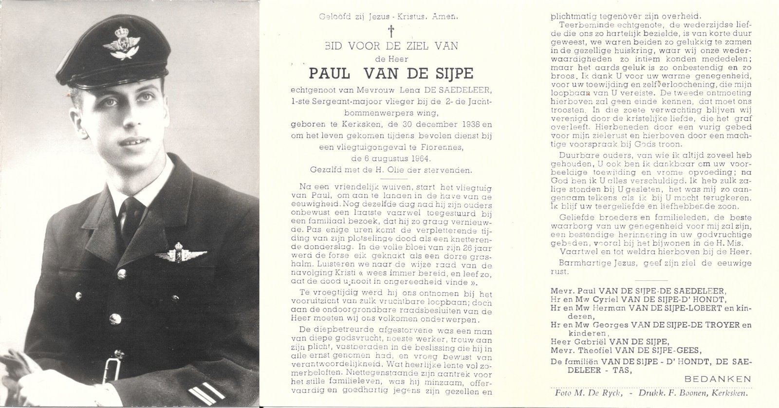 | Van De Sijpe Paul | Kerksken | 30/12/1938 | Florennes | 06/08/1964 |