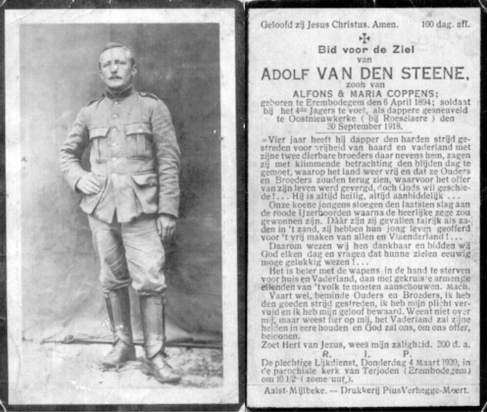 | Van Den Steene Adolf | Erembodegem | 06/04/1894 | Oostnieuwkerke | 30/09/1918 |