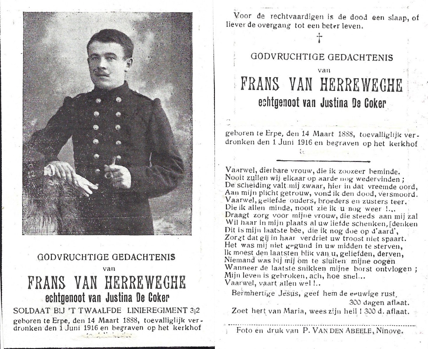 | Van Herreweghe Frans | Erpe | 14/03/1888 | Oeren-Alveringen | 01/06/1916 |