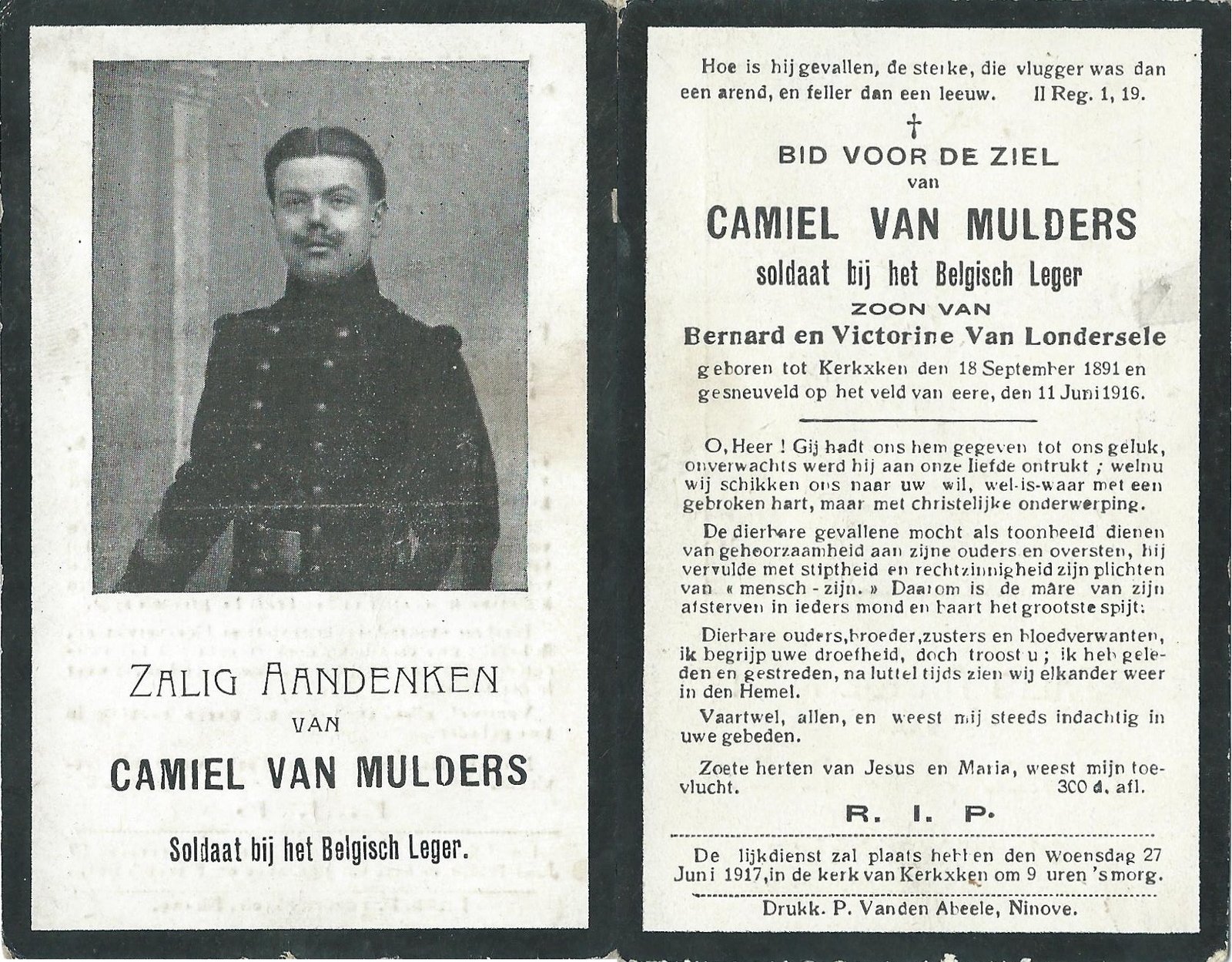 | Van Mulders Camiel | Kerksken | 18/09/1890 | Diksmuide | 11/06/1916 |