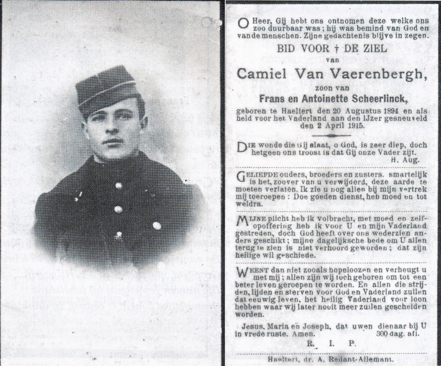 | Van Vaerenbergh Kamiel | Haaltert | 20/08/1894 | Diksmuide | 02/04/1915 |