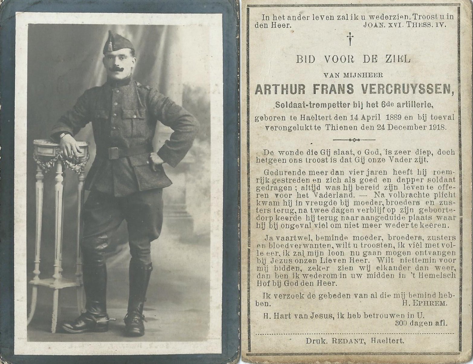 | Vercruyssen Arthur | Haaltert | 14/04/1889 | Tienen | 24/12/1918 |