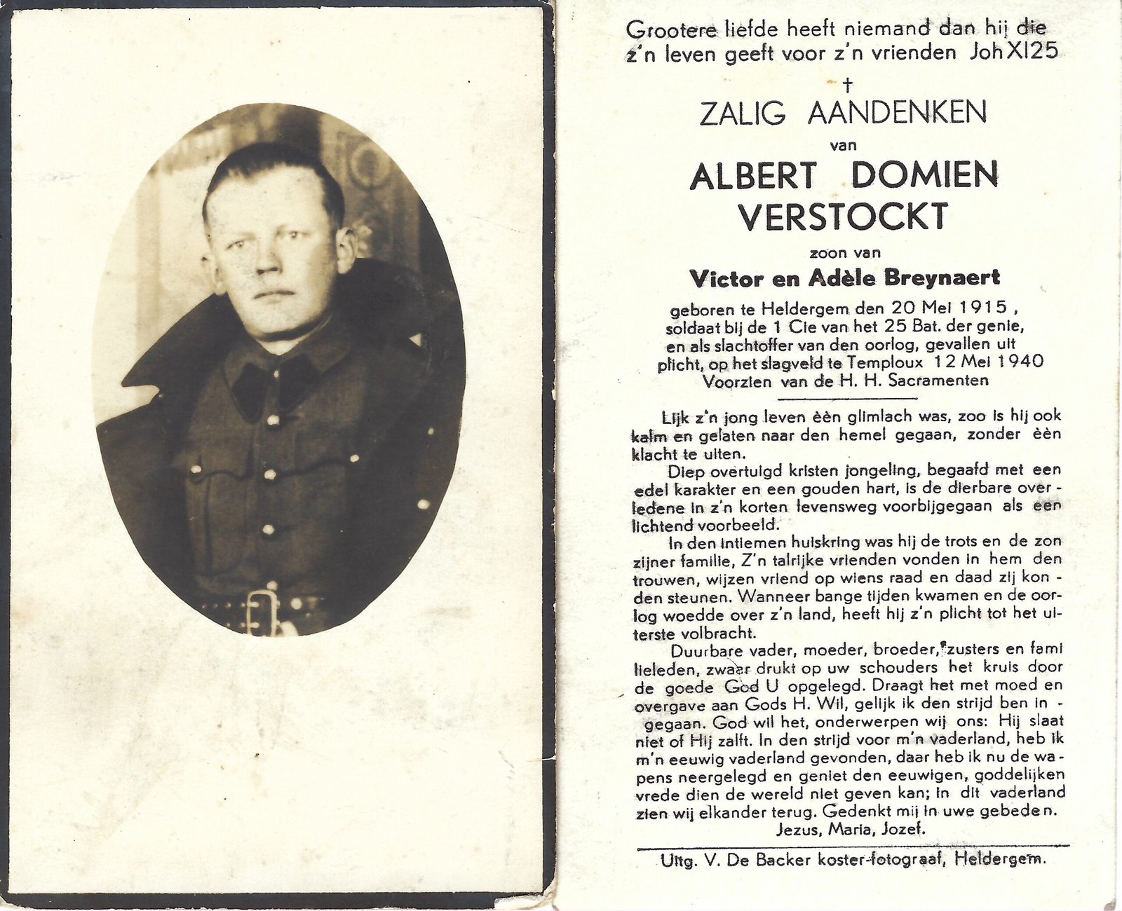 | Verstockt Domien | Heldergem | 20/05/1915 | Temploux (Fr) | 12/05/1940 |