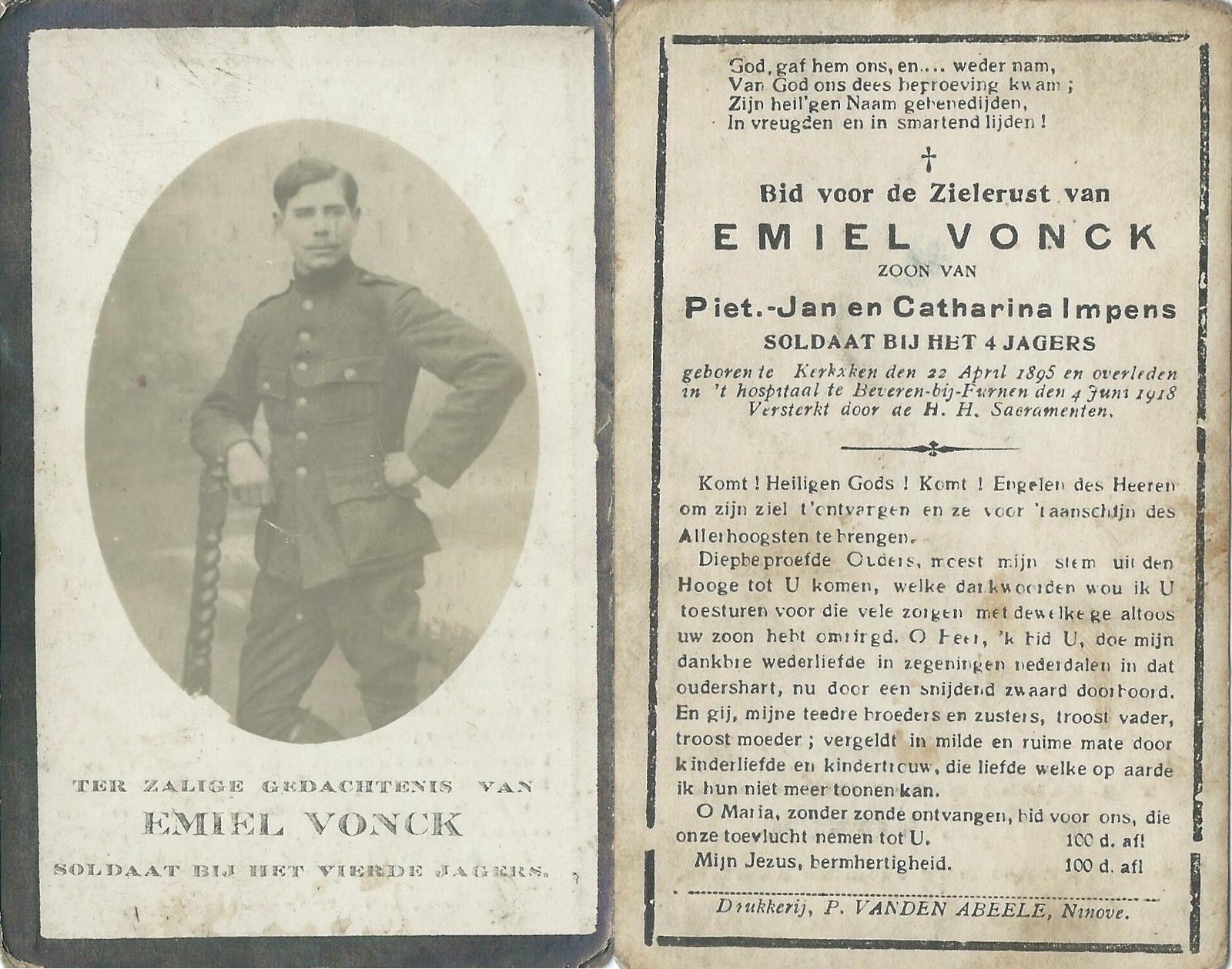 | Vonck Emiel | Kerksken | 22/04/1895 | Beveren bij Veurne | 04/06/1918 |