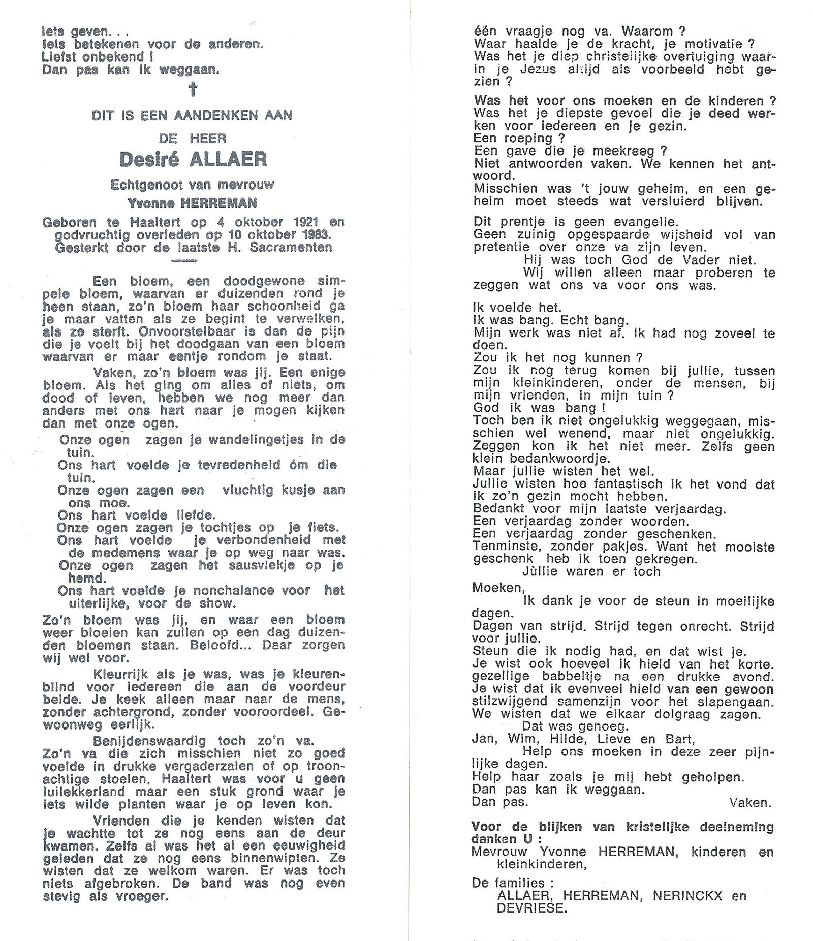 | Allaer Désiré, Schepen Haaltert | Haaltert | 04/10/1921 | Haaltert | 10/10/1983 |