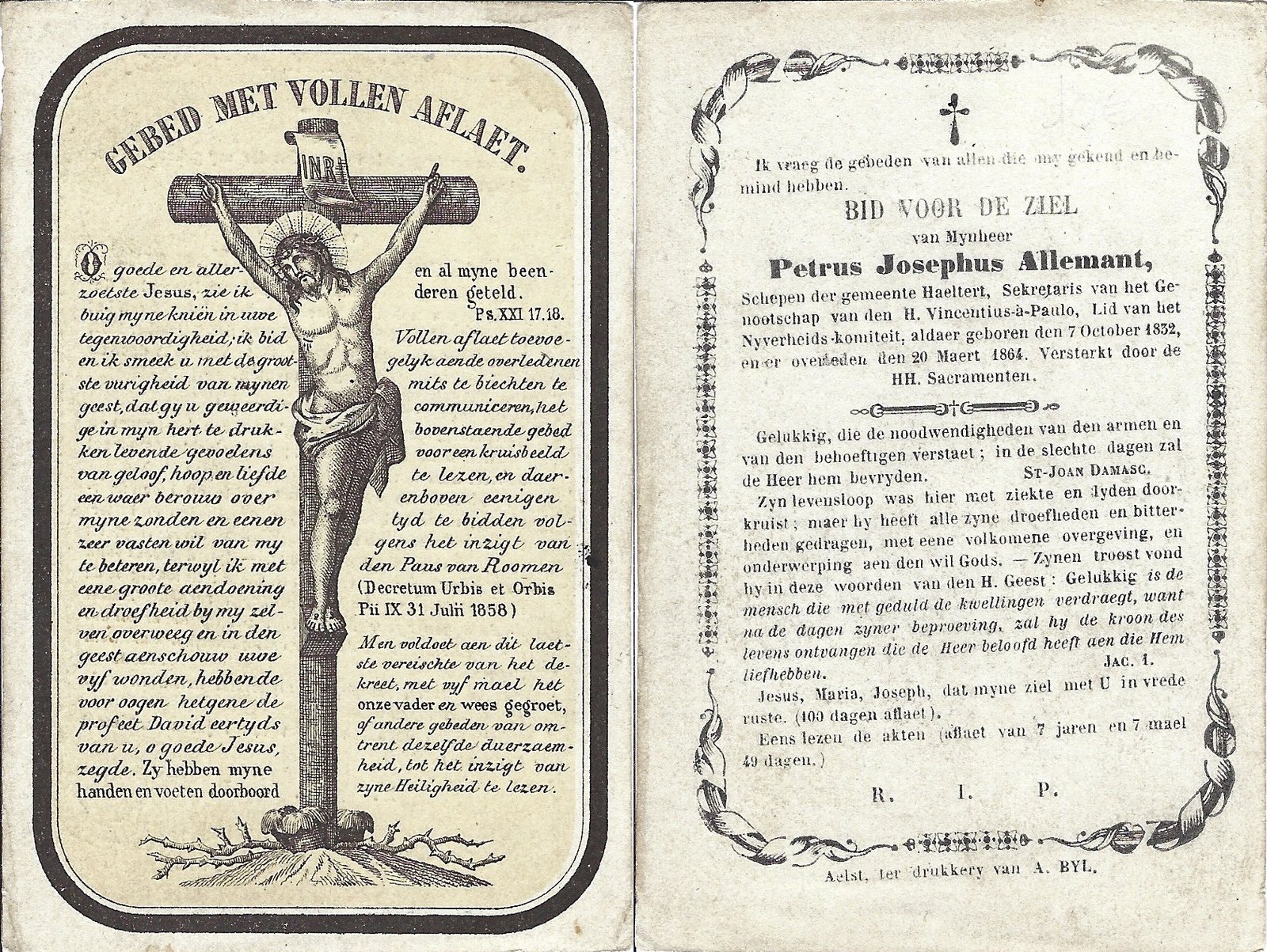 | Allemant Petrus, Schepen Haaltert | Haaltert | 07/10/1832 | Haaltert | 20/03/1864 |