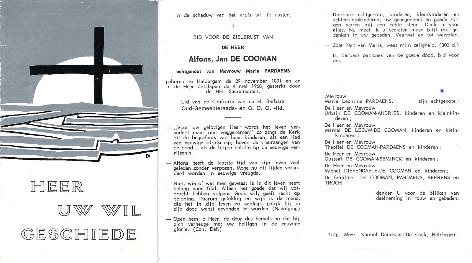 | De Cooman Alfons, Gemeenteraadslid Heldergem | Heldergem | 29/11/1891 | Heldergem | 04/05/1968 |