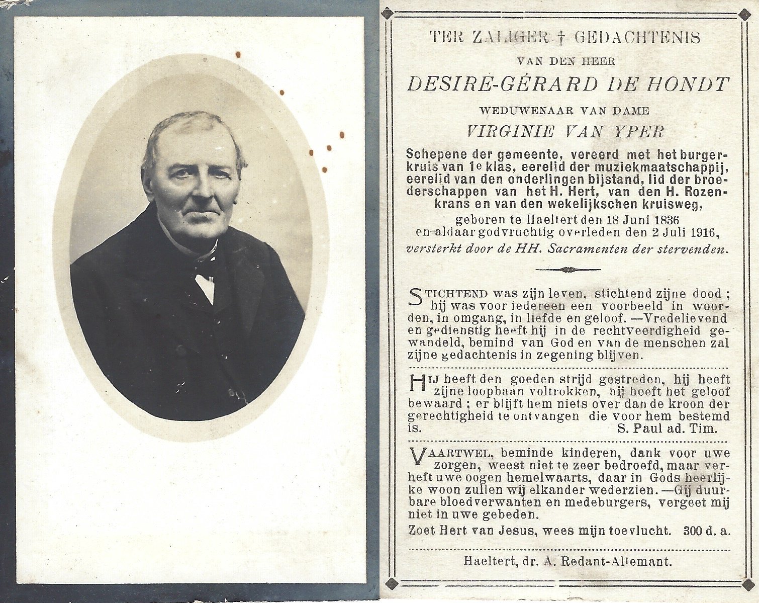 | De Hondt Désire, Schepen Haaltert | Haaltert | 18/06/1836 | Haaltert | 02/07/1916 |