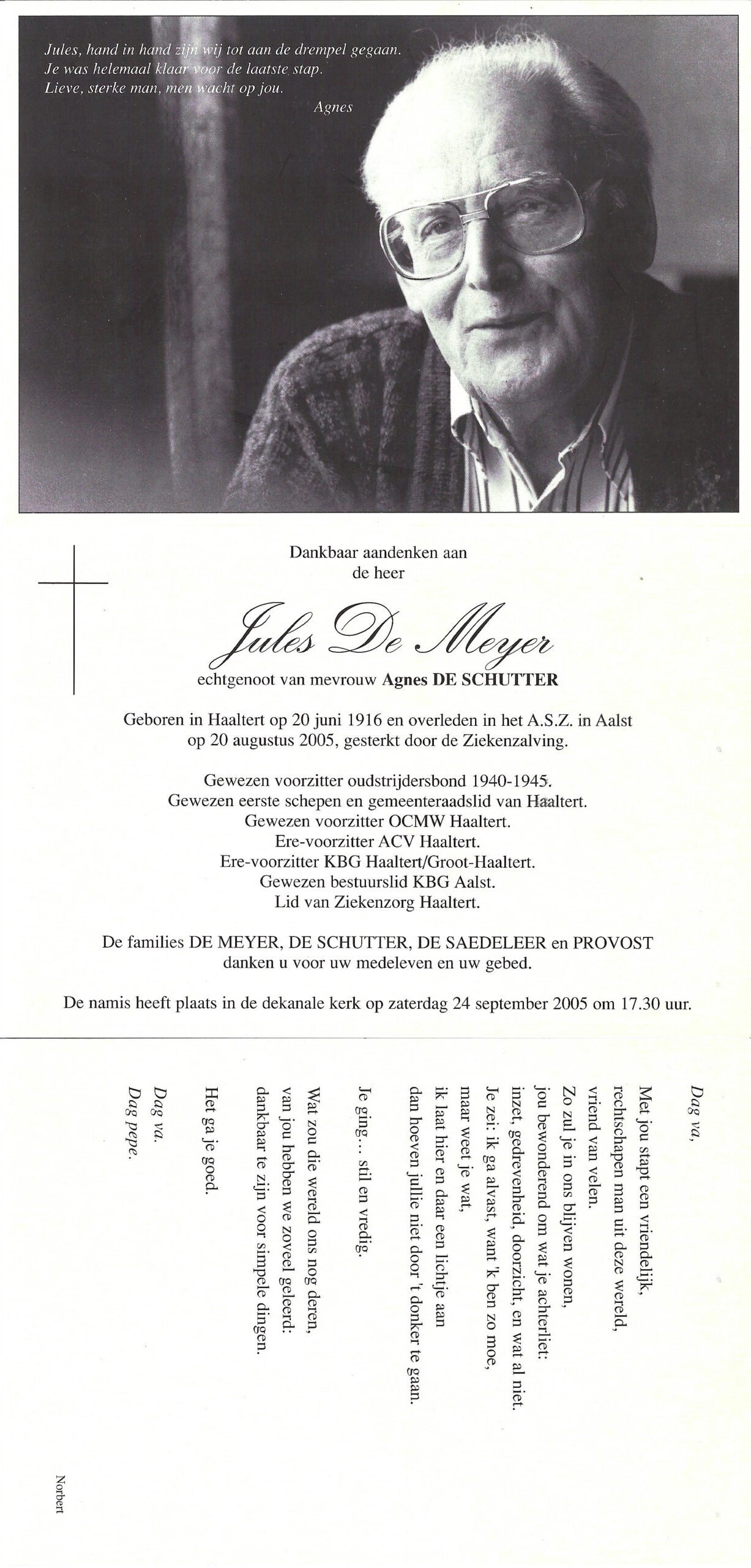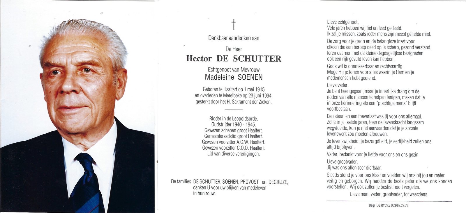 | De Schutter Hector, Schepen Haaltert | Haaltert | 01/05/1915 | Meerbeke | 23/06/1994 |