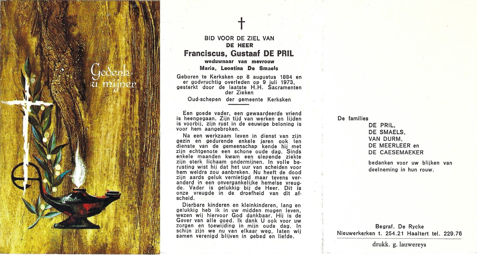 | De Pril Franciscus, Schepen Kerksken | Kerksken | 08/08/1884 | Kerksken | 09/07/1973 |