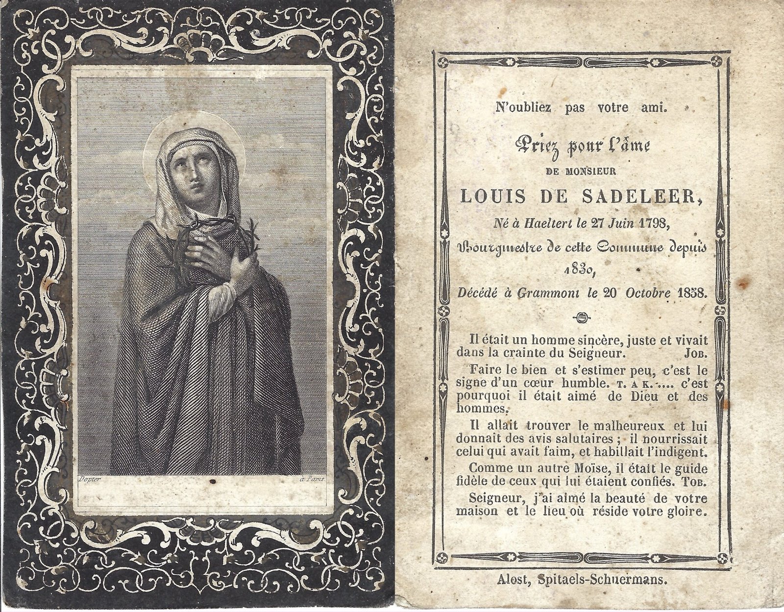 | de Sadeleer Louis, Burgemeester Haaltert | Haaltert | 27/06/1798 | Geraardsbergen | 20/10/1858 |