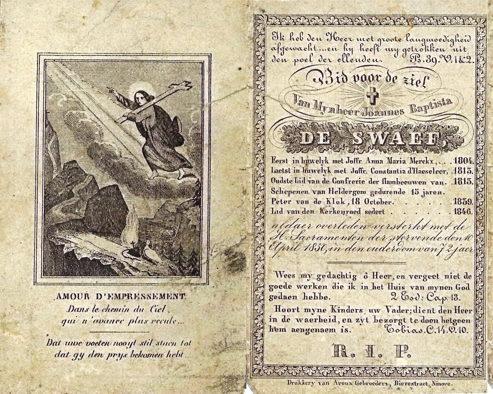 | De Swaef Joannes, Schepen Heldergem | Heldergem | 21/08/1778 | Heldergem | 10/04/1850 |
