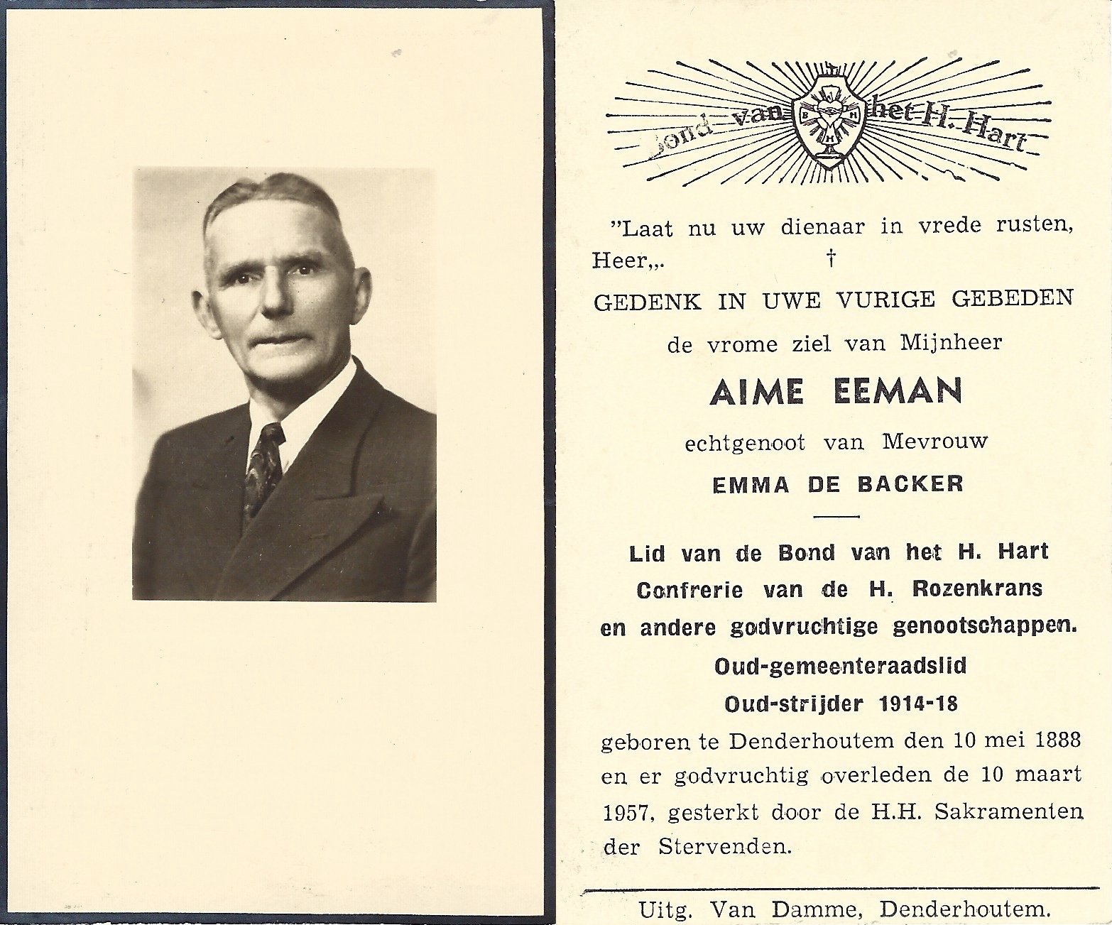 | Eeman Aimé, Gemeenteraadslid Denderhoutem | Denderhoutem | 10/05/1888 | Denderhoutem | 10/03/1957 |