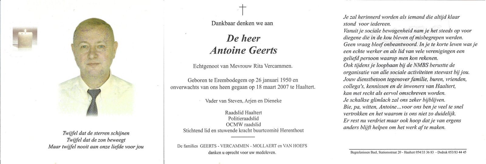 | Geerts Antoine, Gemeenteraadslid Haaltert | Erembodegem | 26/01/1950 | Haaltert | 18/03/2007 |