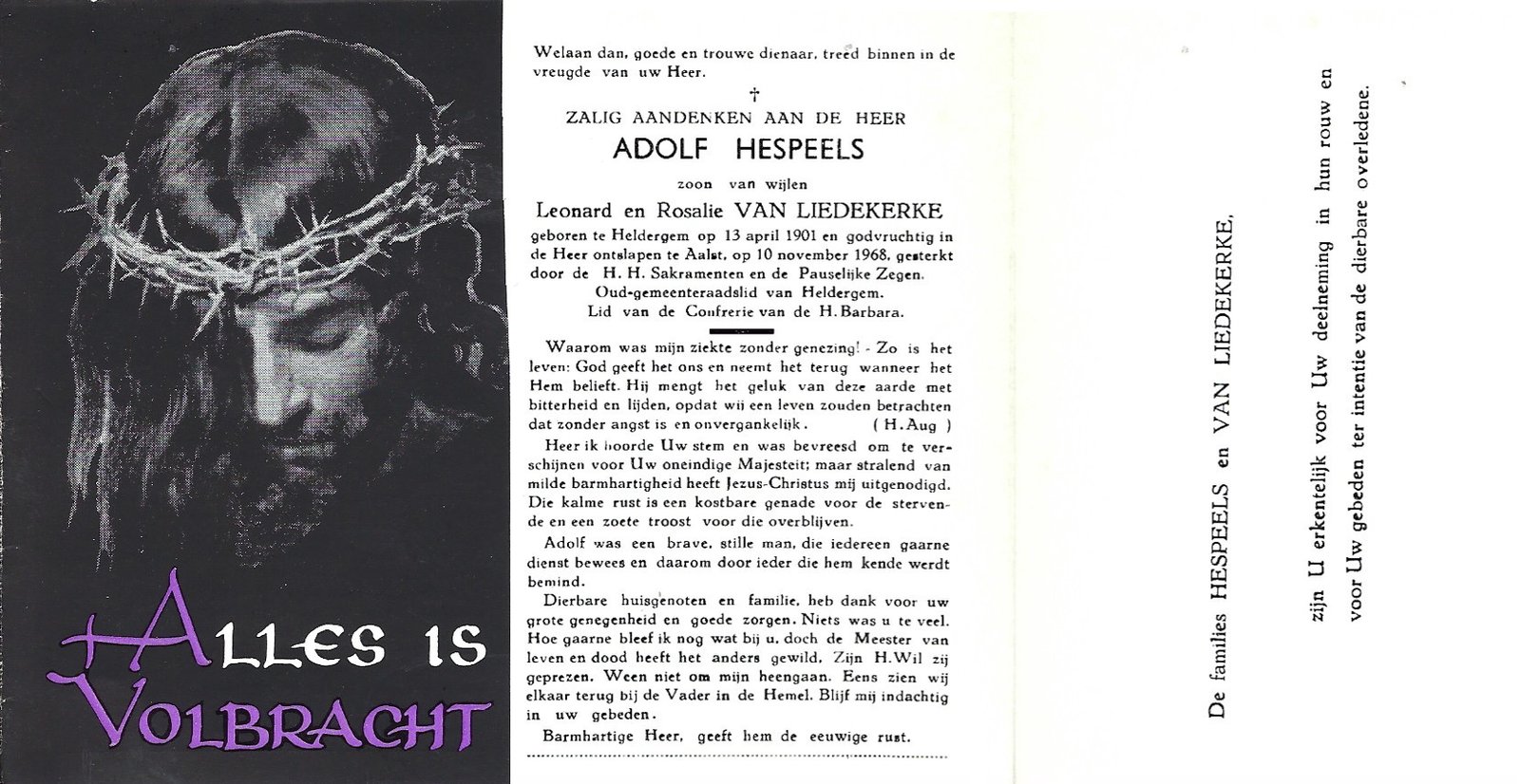 | Hespeels Adolf, Gemeenteraadslid Heldergem | Heldergem | 13/04/1901 | Aalst | 10/11/1968 |