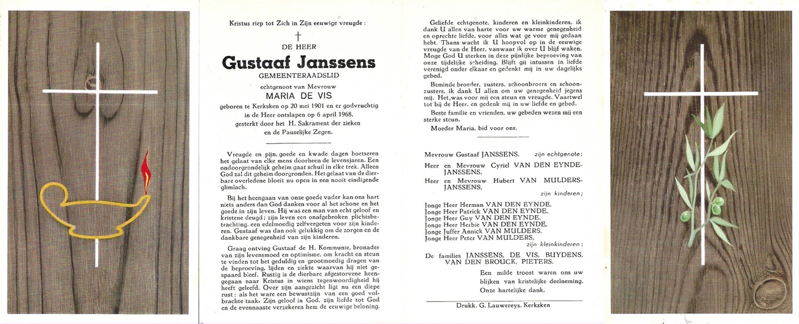 | Janssens Gustaaf, Gemeenteraadslid Kerksken | Kerksken | 20/05/1901 | Kerksken | 06/04/1968 |