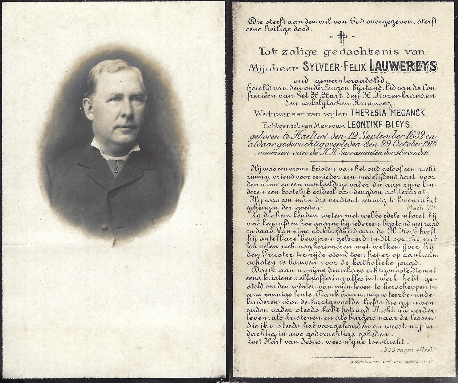 | Lauwereys Sylveer, Gemeenteraadslid Haaltert | Haaltert | 12/09/1832 | Haaltert | 20/10/1916 |