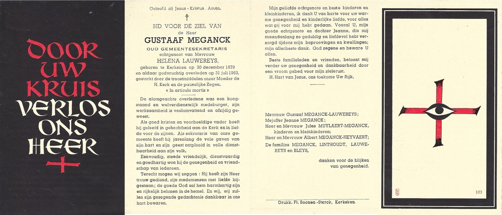 | Meganck Gustaaf, Gemeentesecretaris Kerksken | Kerksken | 30/12/1879 | Kerksken | 31/07/1963 |