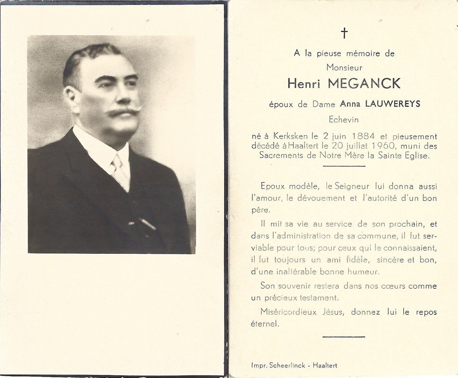 | Meganck Henri, Schepen Haaltert | Kerksken | 02/06/1884 | Haaltert | 20/07/1960 |