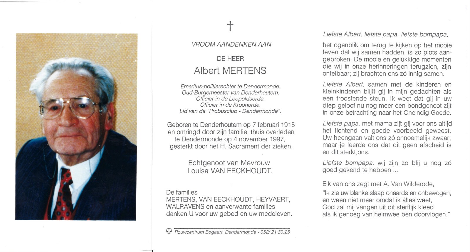 | Mertens Albert, Burgemeester Denderhoutem | Denderhoutem | 07/02/1915 | Dendermonde | 04/11/1997 |